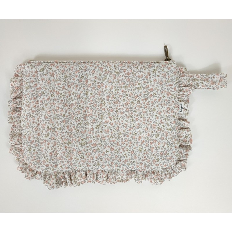 Neceser en viyela estampada de flores en tonos rosa y gris.