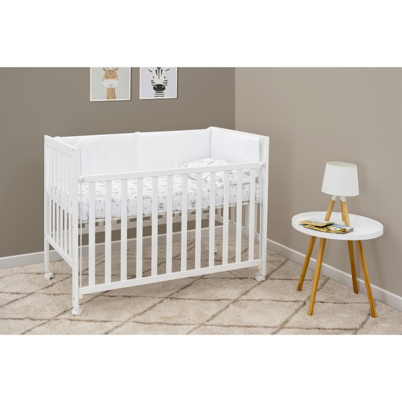 - Estructura de madera en color blanco con 4 ruedas que poseen un óptimo sistema de frenado para evitar que la cuna se mueva sola.
