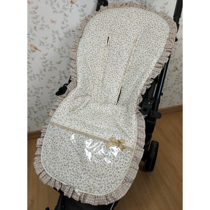 Colchoneta universal Laura para silla de paseo en tonos verdes y arena.
