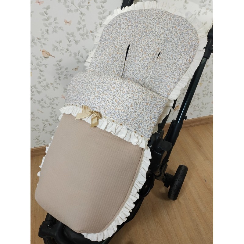 Saco universal para silla de paseo en pequeñas flores en tonos azules y camel.